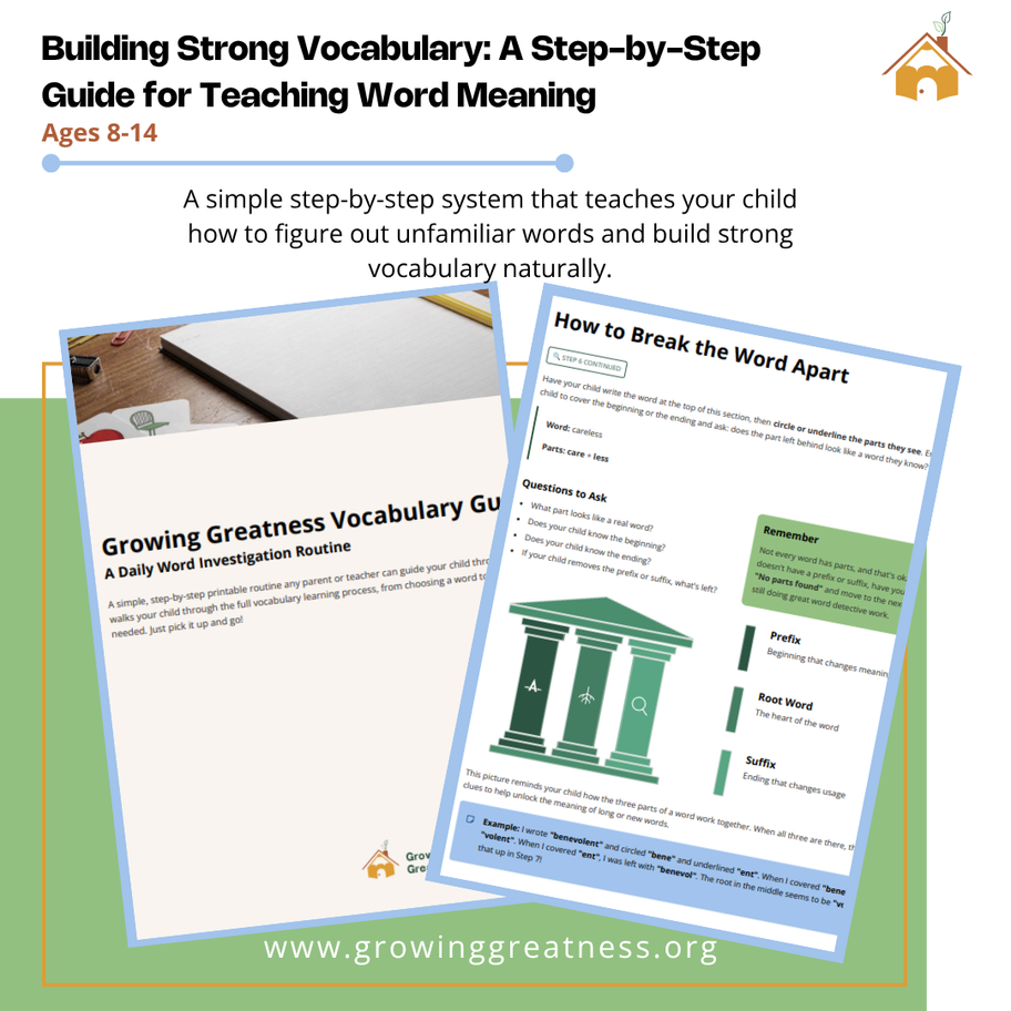 This guide gives homeschool parents a simple system to teach vocabulary in a way that is meaningful, natural, and easy to repeat.
